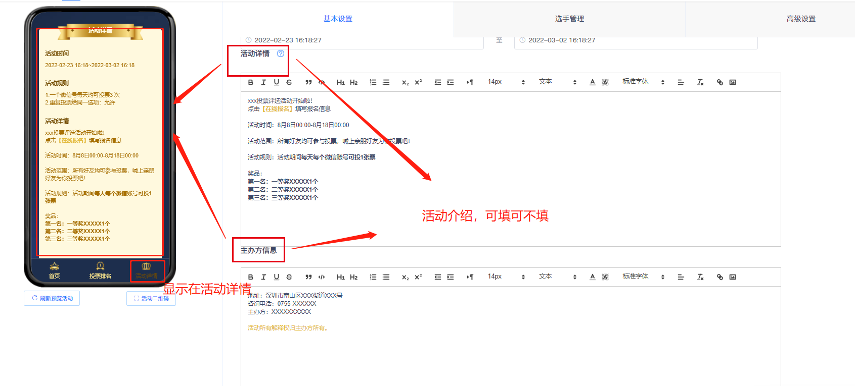 进入选手管理,添加选手后,点击对应选手的编辑按钮进入添加音频就可以啦~!(选手也可以添加图片哦)