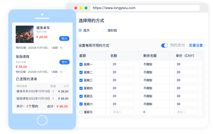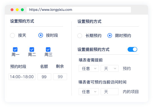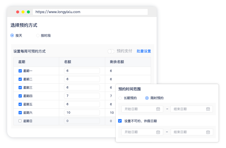 支持(按天)或(时间段)的预约方式